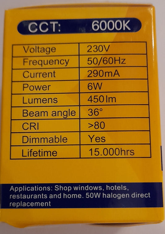 10 X LED Mr16 6Watts Daylight Mains 230 Volt Dimmable by MKM