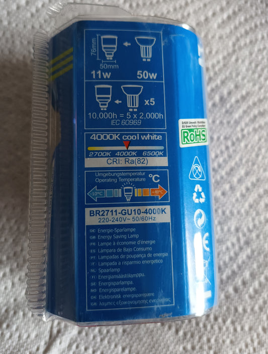 2 x BR2711 cfl GU10 11 Watts Cool white /4k by Megaman