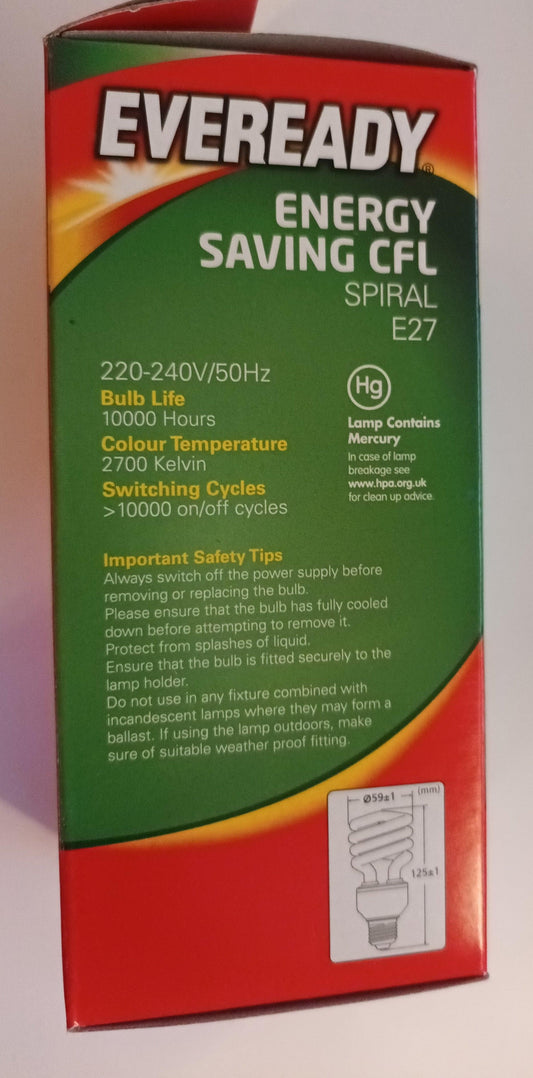4 x 20Watt Energy Saving CFL Spiral E27 / ES Warm White by Eveready