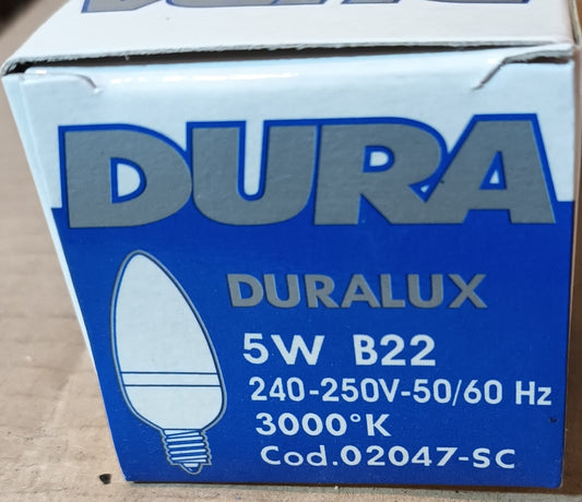 5 X Candle 5W B22 / BC Warm White By Dura