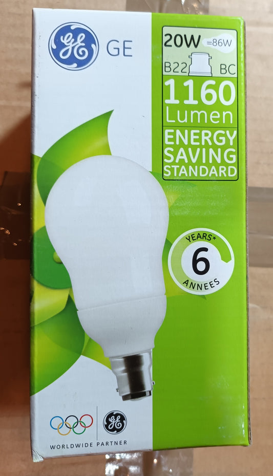 GE 20 Watt = 86W GLS CFL Low Energy Lamp Warm White BC / B22 Cap as low £3