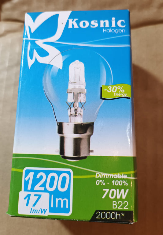 GLS Halogen Clear 70watt ( 1200LM ) BC / B22 cap by Kosnic