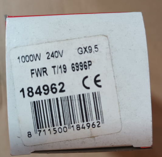 Theatre Lamp by Philips FWR 6996P T19 240Volt 1000Ws GX9.5 Lamp Replacement Light Bulb