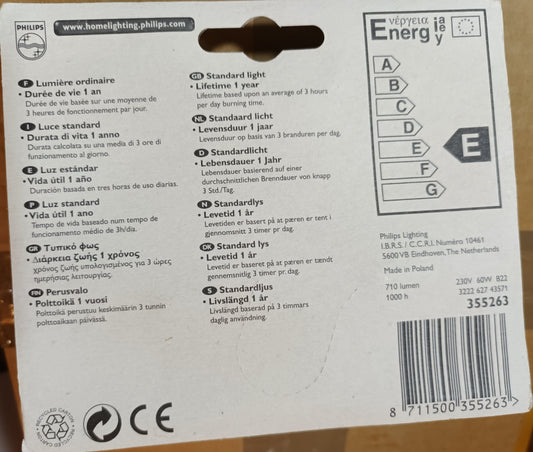 Twin Pack Philips 60W clear BC / B22 made in Poland
