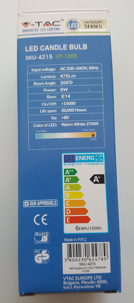 LED Candle 6Watt E14 Warm White by V-Tac from £3.10