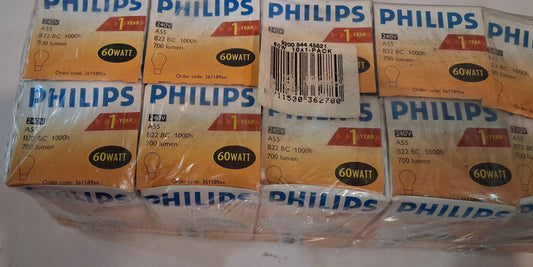 60 Watt Standard Shape (GLS) Bayonet Cap Pearl by Philips ten pack.
