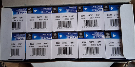 GE GU10 20 watts halogen 1500 hours 36deg from £1.35