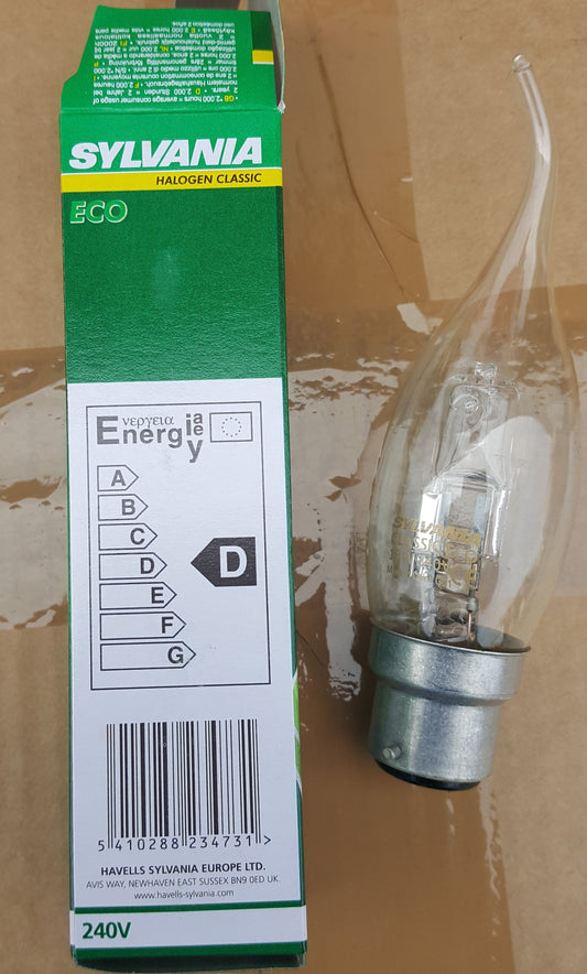 Candle Halogen Bent Tip 18 Watt BC / B22 Bayonet Pack Of 10 by Sylvania