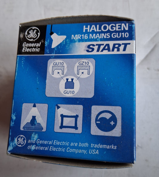 GE gu10 50 watts = 340lm 1500hrs warm white. from £1.50.
