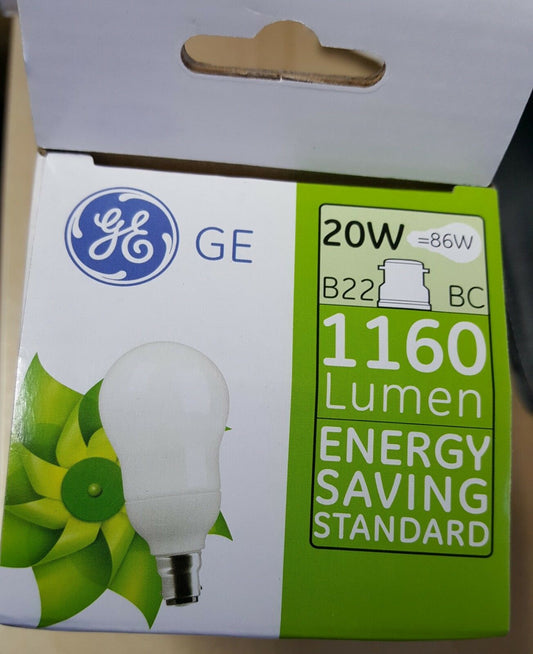 GE Energy Saving Bulbs BC (B22) Or ES / E27 20W = 86W = 1160 Lumens