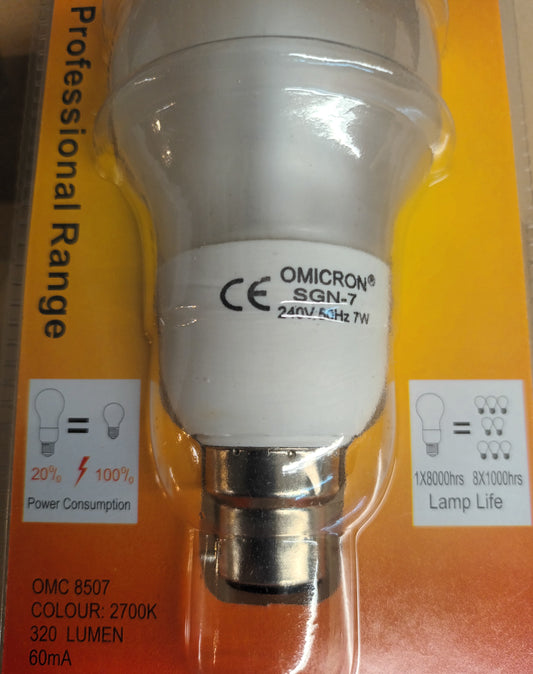 GLS 7 Watt BC/ B22 CFL Warm White Six pack £10