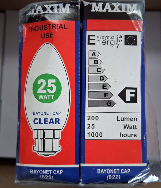 15 Watt candle BC / B22 Clear by Crompton pack of ten £22