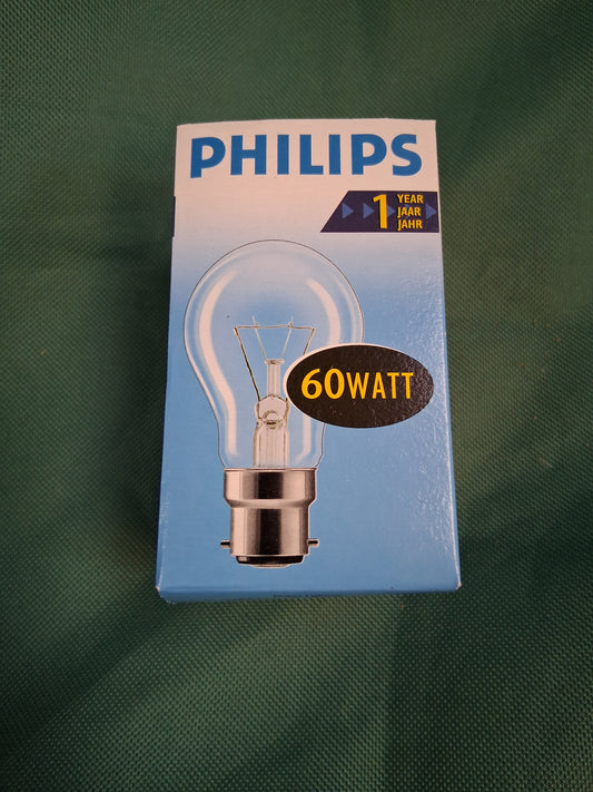 Twin Pack Philips 60W clear BC / B22 made in Poland