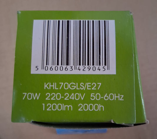 GLS Halogen Clear 70 watt ( 1200LM ) ES / E27 cap by Kosnic