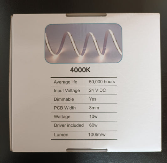 LED 5 Metre COB Seamless Dimmable strip kit Cool white