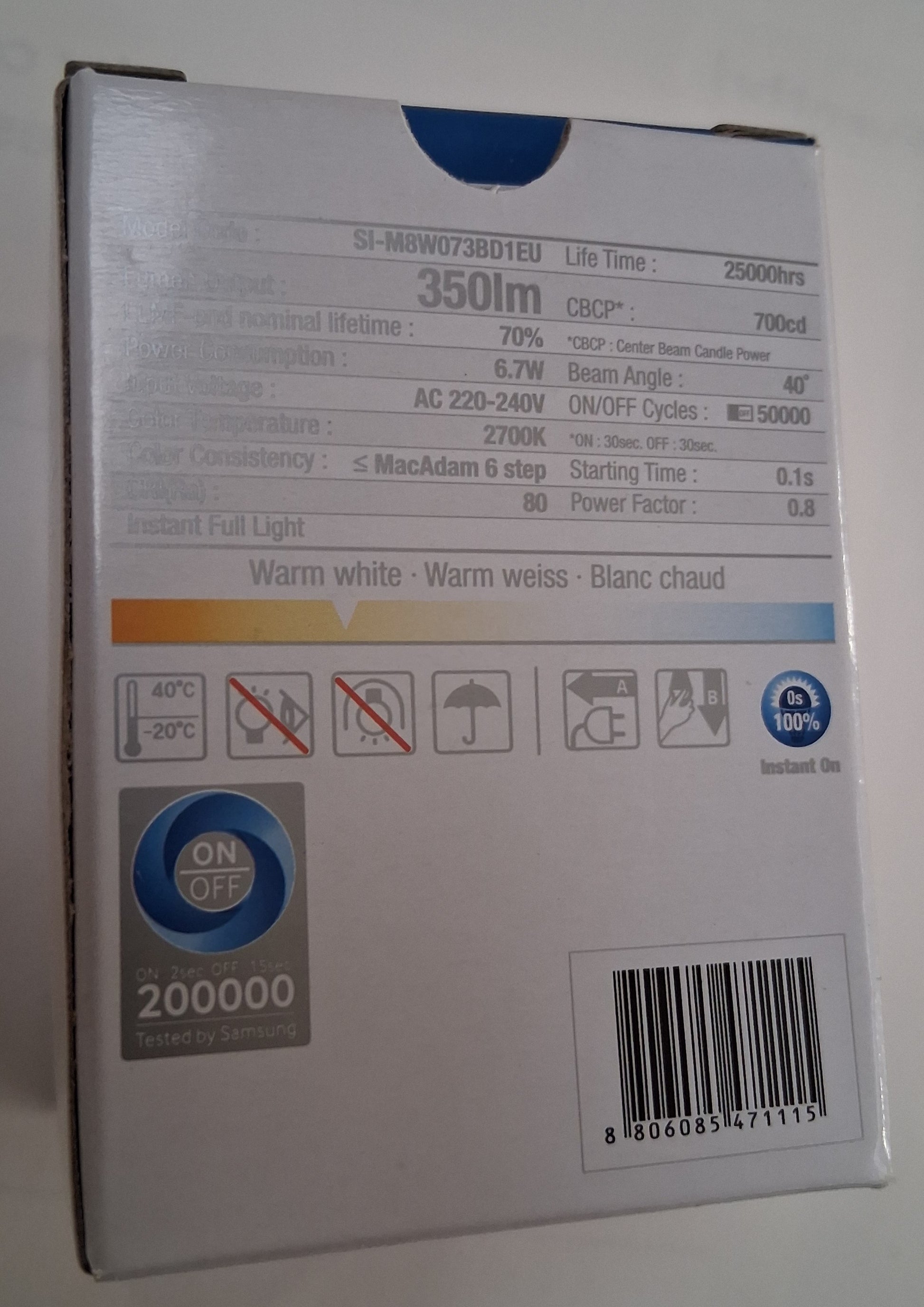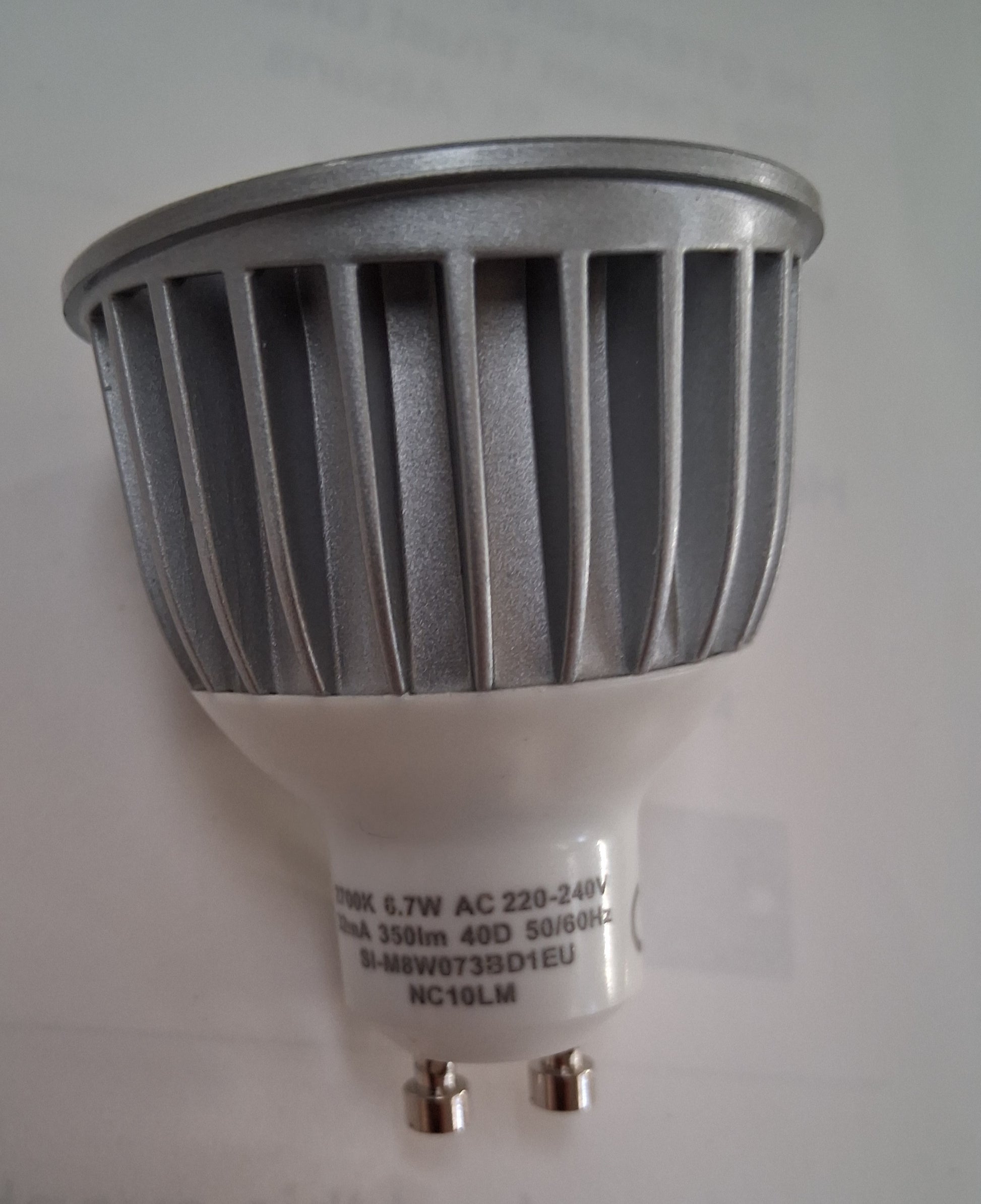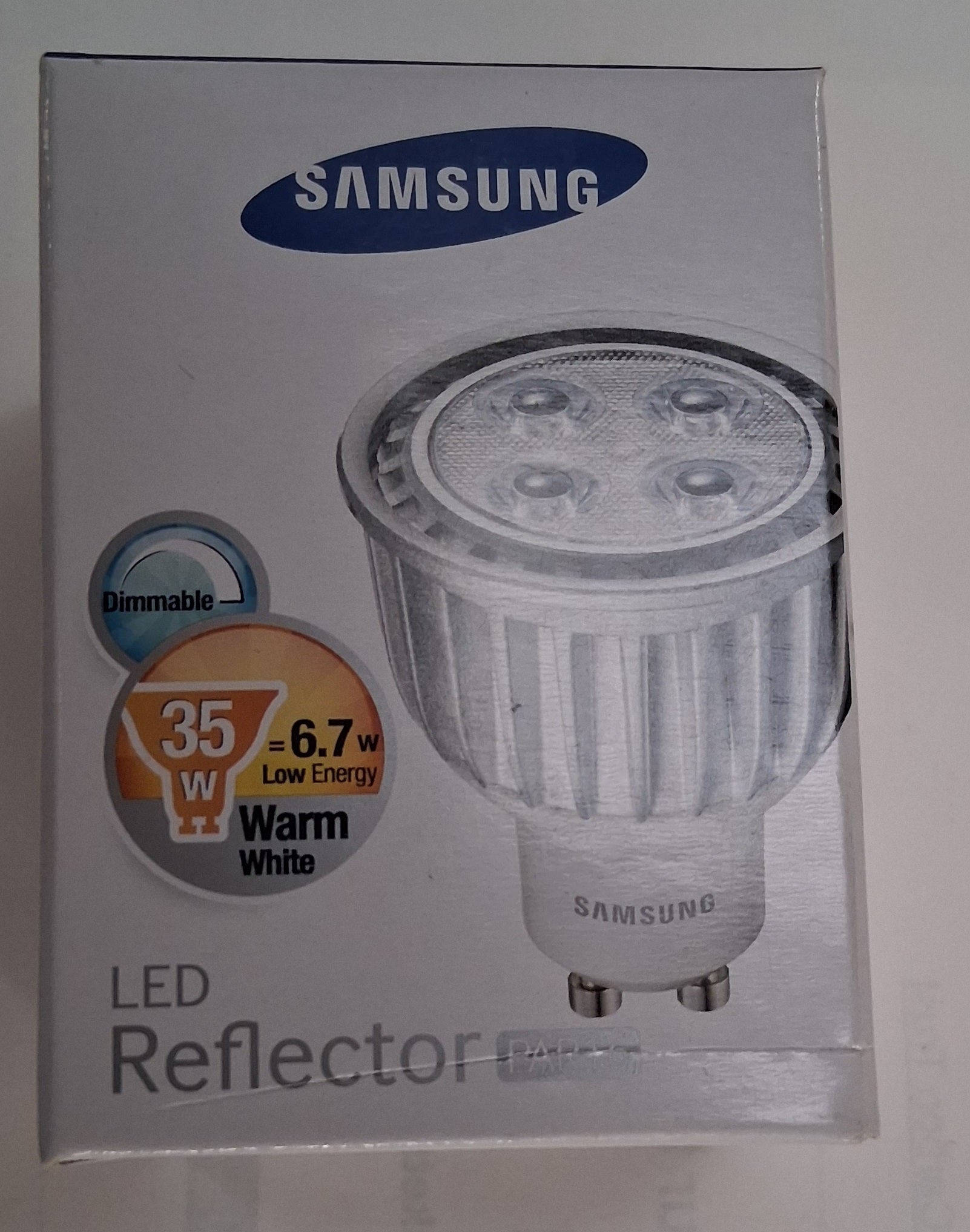 Gu10 by Samsung 6.7 watt dimmable warm white.